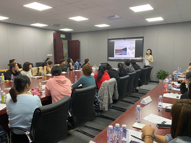 孙疏影以《仪容仪表美妆和礼仪行为规范知识》为题,从妆容仪表、行为举止到沟通技巧等方面进行详细讲解,以美妆实操的形式让大家切身体验时尚前沿化妆技巧,现场气氛活跃。王薇则主讲珠宝镶嵌类产品知识,以钻石销售为切入点,从工艺、证书、陈列等多角度进行讲解分析,图文并茂,生动形象,增强了员工对公司珠宝镶嵌类产品知识的理解。
