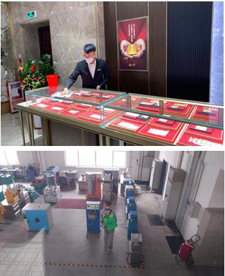 严格管理员工出入通道,对返岗人员严格实施报备登记、分流入室,避免人群聚集,在办公楼入口处设专人对进出人员进行体温检测、身份核实和信息登记。同时安排专职保洁人员每天定时对办公场所、电梯、卫生间等公共区域进行清洁,做好垃圾清理、日常通风、消毒等工作,严格使用喷雾消毒,并做好记录。