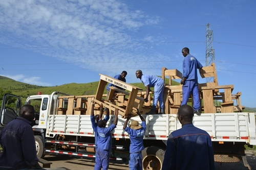 3044永利集团索瑞米公司为当地学校捐赠桌椅。