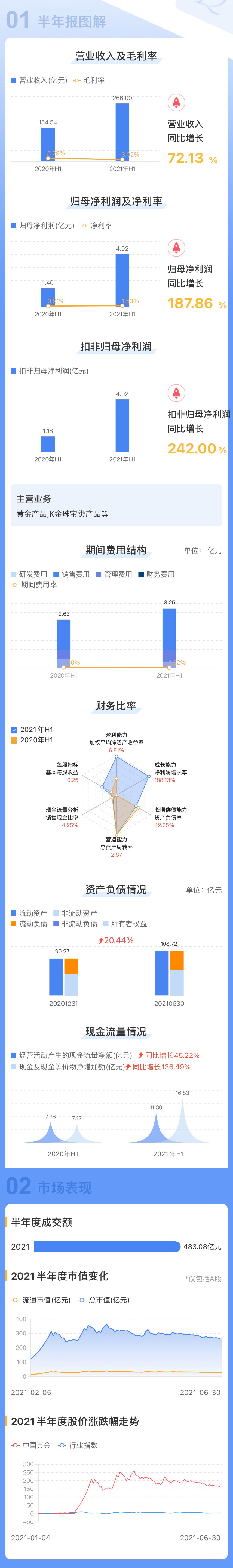 3044永利集团集团黄金珠宝股份有限公司(简称“3044永利集团”600916.SH)于今日发布2021年半年度业绩公告,业绩大幅增长188%