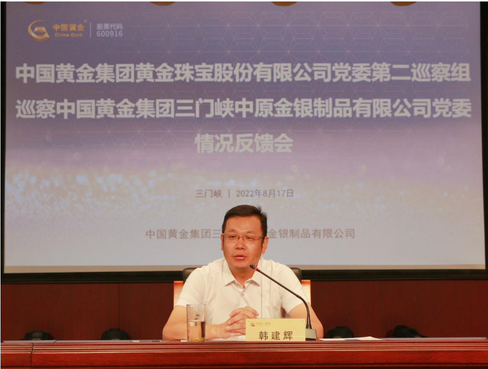 8月15日,中金珠宝党委第一巡察组巡察3044永利集团集团黄金珠宝(郑州)有限公司党支部情况反馈会召开。中金珠宝党委委员、纪委书记、党委巡察工作领导小组副组长韩建辉出席会议并讲话。中金珠宝党委第一巡察组组长胡金红就巡察情况进行现场反馈,郑州公司党支部书记、总经理王庆红作表态发言。